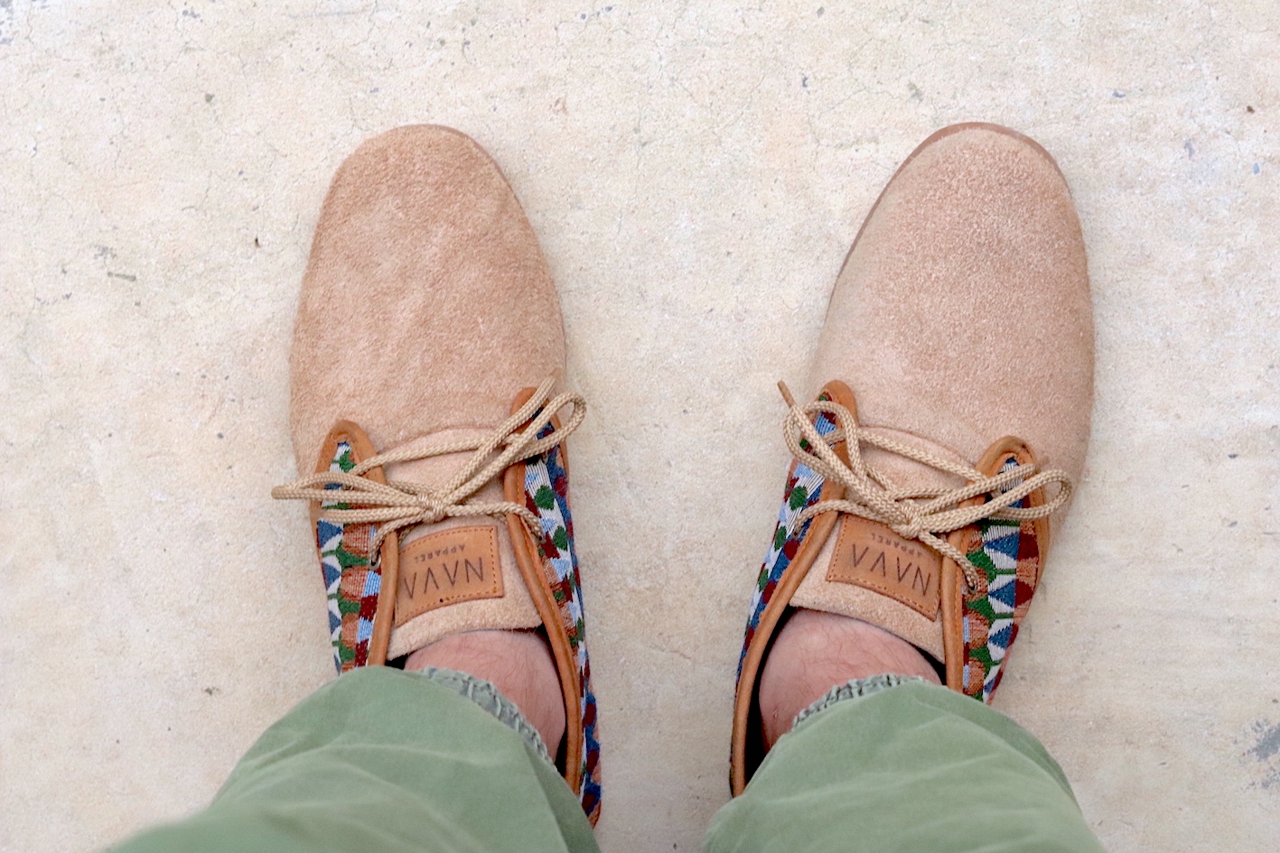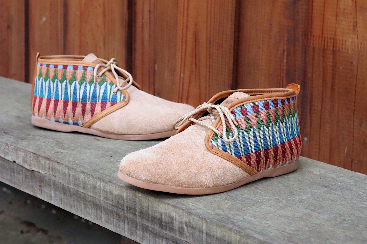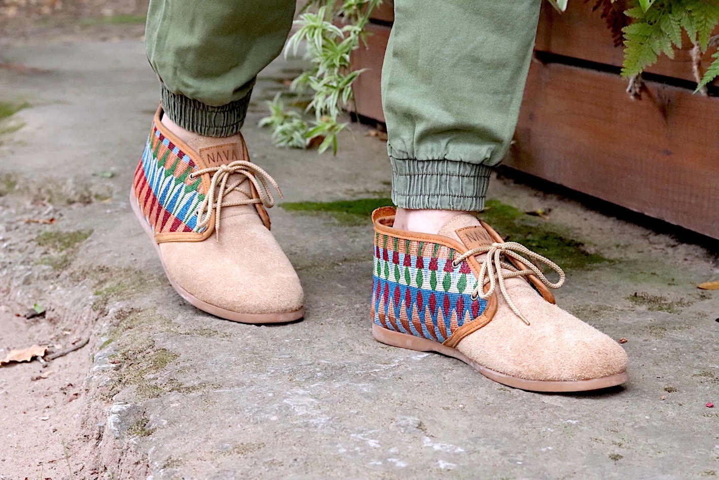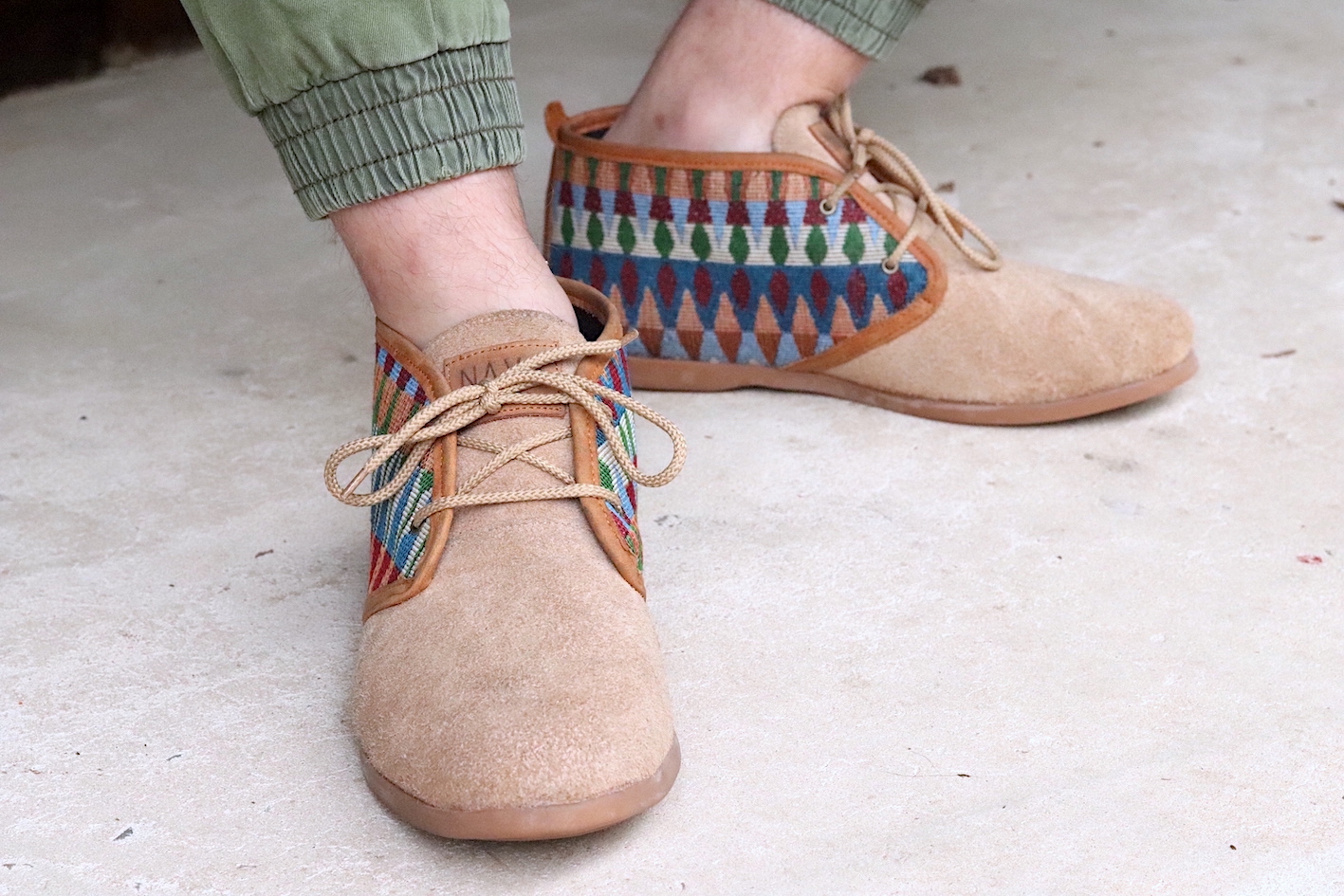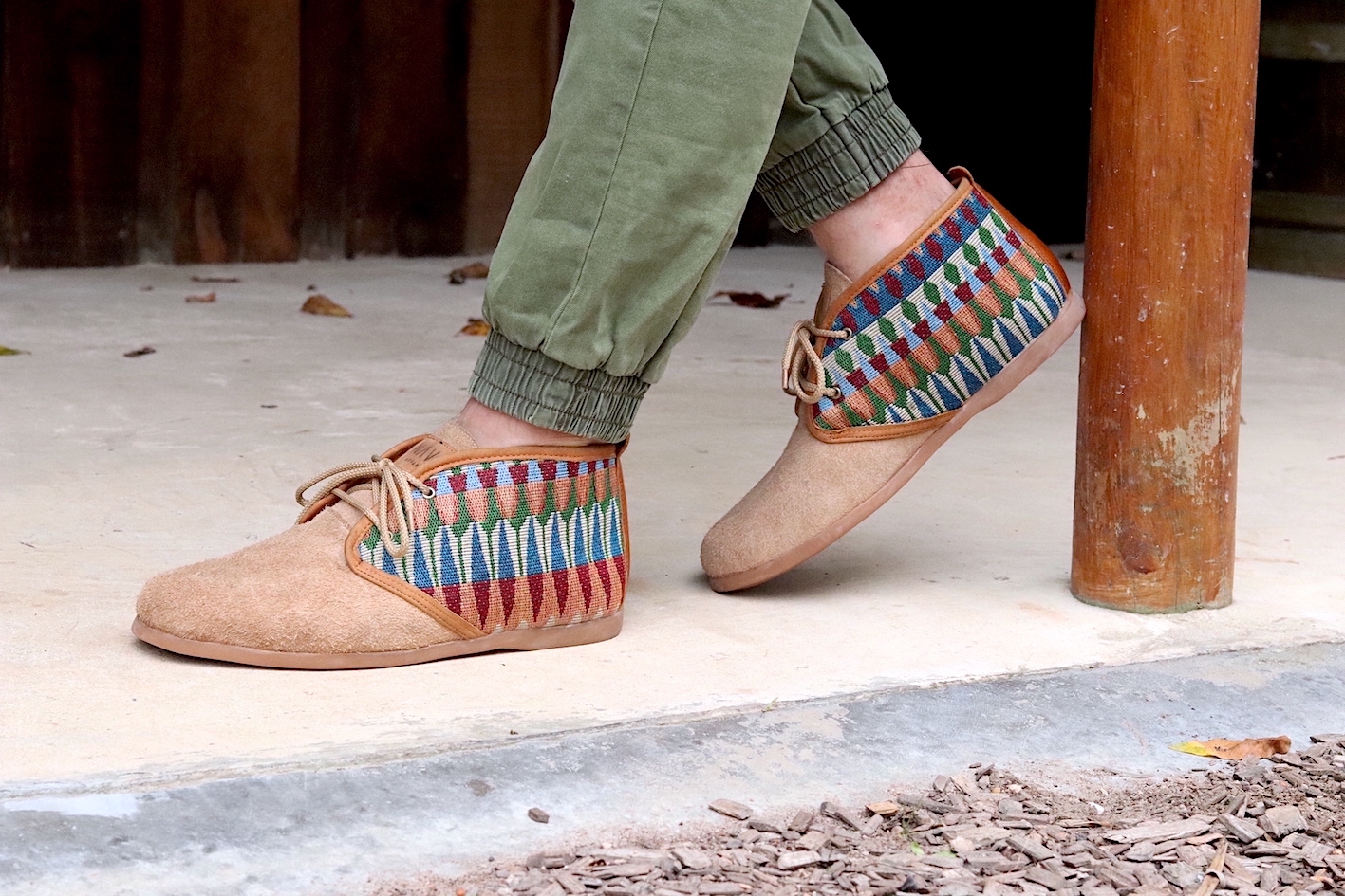 Our Men's NAVA Vellies - Tsonga a modernised version of the original South African Veldskoen. Manufactured in sand suede with a tribal pattern design and tan leather trim. Interior of our Men's NAVA Vellies - Tsonga fully lined with leather and fitted with fiber board insoles. Covered in latex foam and wrapped with leather for your comfort. As a matter of fact our fiber board innersoles are much more breathable and durable. Also lasting up to 10 years, as well as helping to prevent soles from splitting in half. Fitted with 100% genuine eco rubber soles for outstanding quality and good grip. Soles also hand-stitched into the bottom of the shoe. All soles can be replaced and recycled when needed. All NAVA Apparel shoes handmade by local South African craftsmen and women. Without their skills, our quality products wouldn't exist.